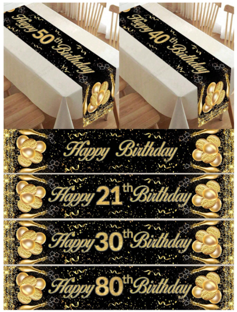 Tafelloper Happy Birthday (18, 21, 30, 40, 50, 60, 70, 80 jaar)